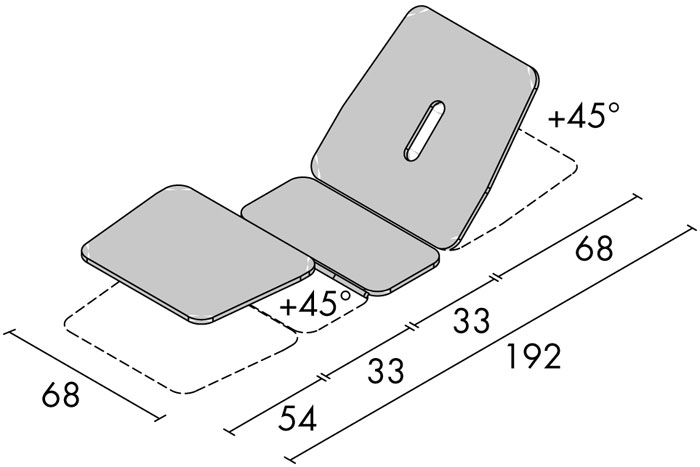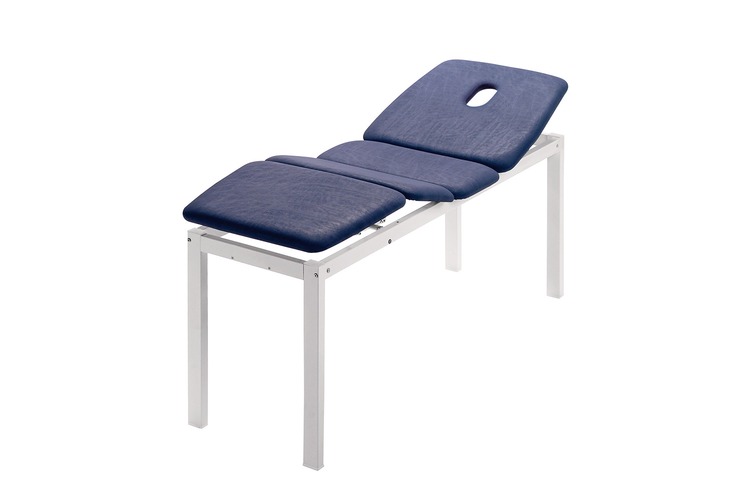 Camillapara consultas y tratamientos en metal con cuatro secciones y altura fija de 78 cm. Las secciones tienen un ancho estándar de 68 cm y las secciones se pueden regular con un sistema manual.