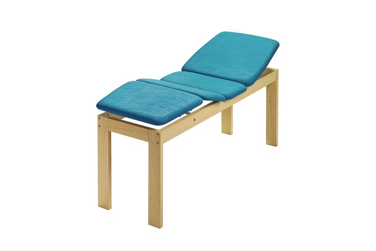 Camilla para consultas y tratamientos de madera de haya con cuatro secciones y altura fija de 78 cm. Las secciones tienen ancho estándar de 68 cm. Las secciones móviles tienen un sistema de regulación manual. La cabecera no comprende el agujero nariz/boca.