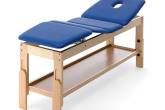 Camilla para consultas y tratamientos de madera de haya con dos secciones y altura variable 63 ÷ 87 cm. Las secciones tienen ancho estándar de 68 cm. La cabecera se regula en positivo hasta 45° con sistema de regulación manual. La cabecera comprende el agujero nariz/boca. Se puede solicitar por separado un tapón. La camilla tiene un útil plano inferior.