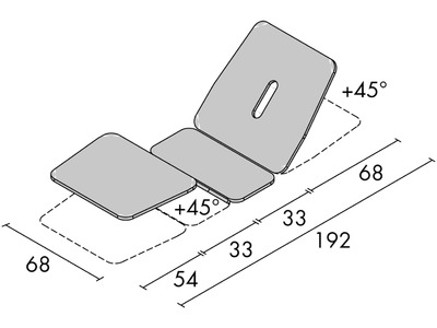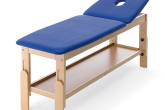 Camilla para consultas y tratamientos de madera de haya con cuatro secciones y altura variable 63 ÷ 87 cm. Las secciones tienen ancho estándar de 68 cm. La cabecera se regula en positivo hasta 45° con sistema de regulación manual. La cabecera comprende el agujero nariz/boca. Se puede solicitar por separado un tapón. La camilla tiene un útil plano inferior.